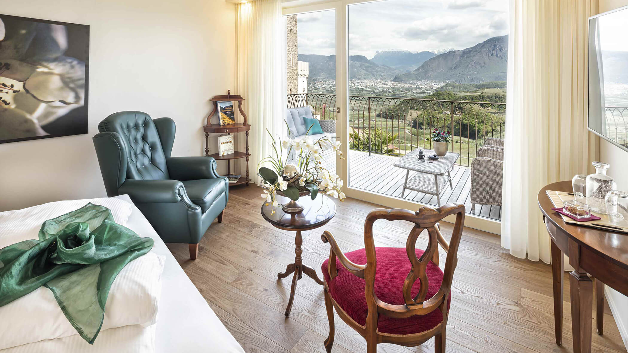 Wunderschöner Ausblick vom privaten Balkon über die Stadt Bozen und zu den Dolomiten